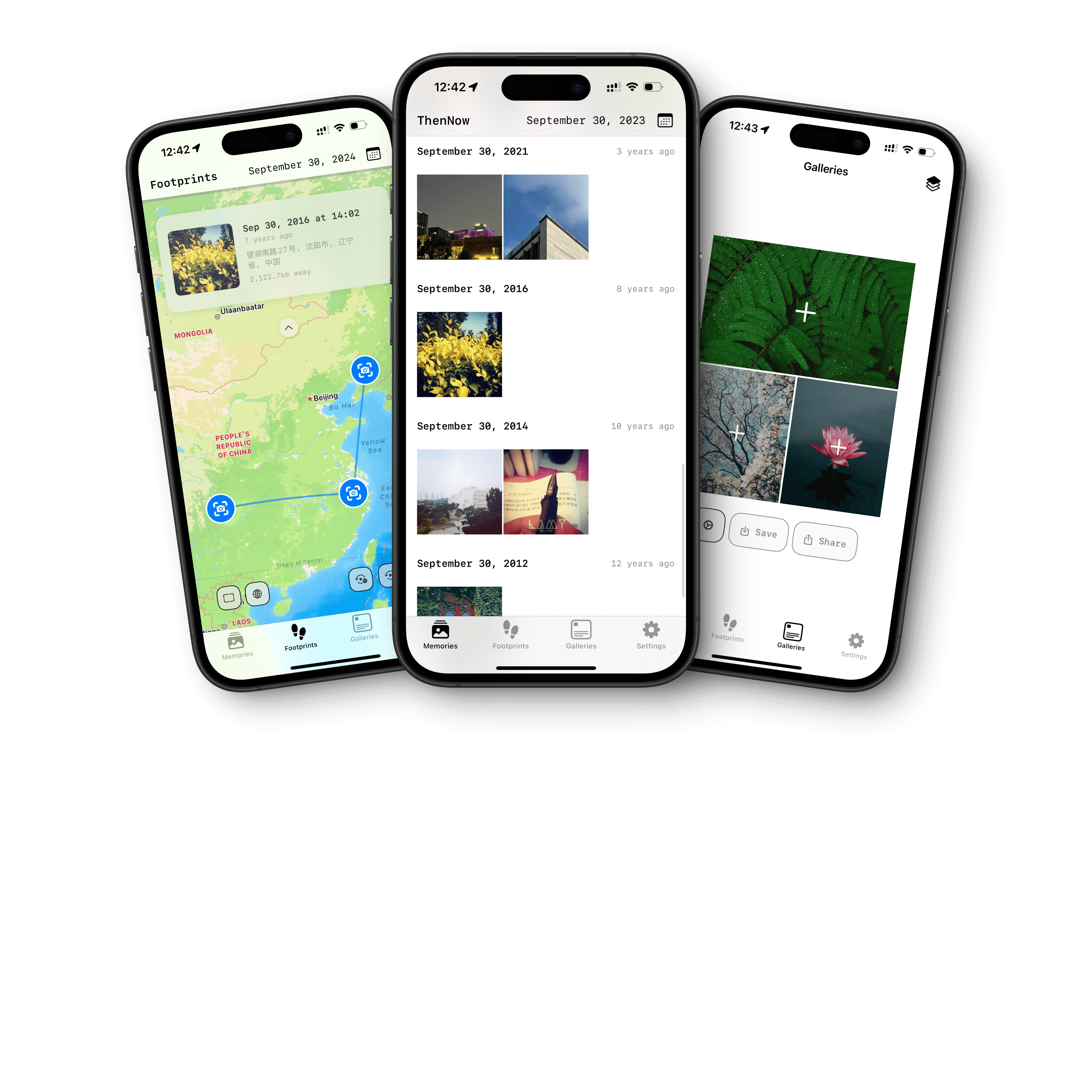 ThenNow automatically organizes your photos by date, allowing you to easily view memories from the same day across different years. It also uses photo location information to create a timeline of places you've visited.